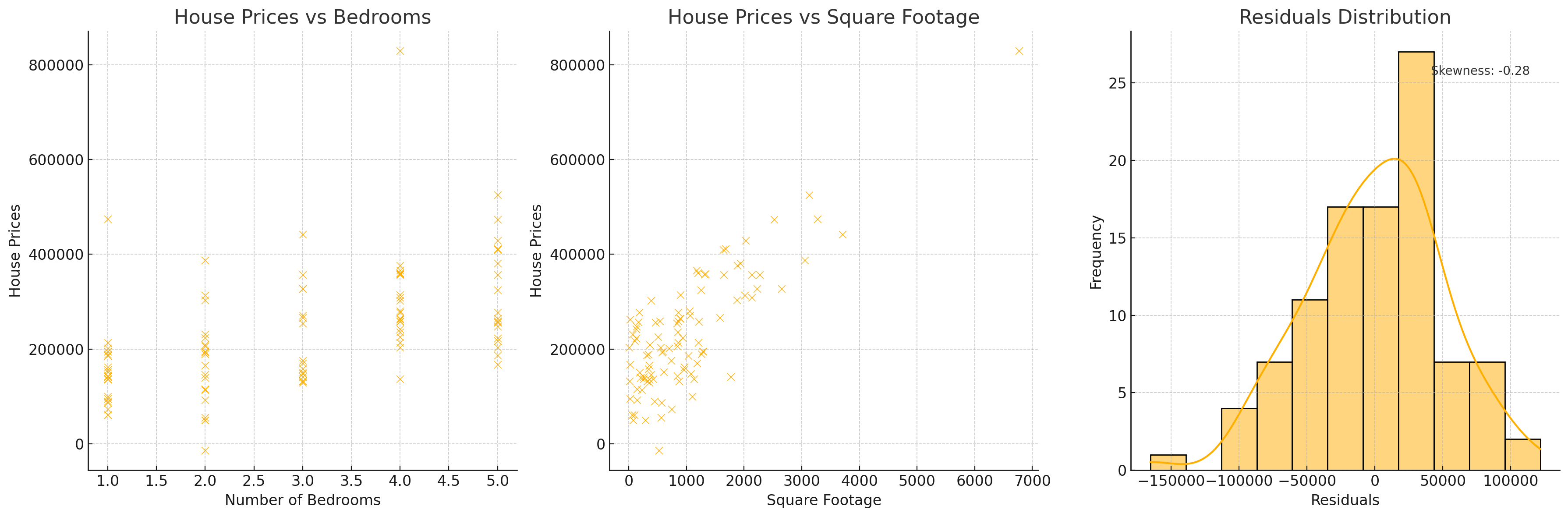 - Reality: Linear regression does not require the predictors to be normally distributed; it only requires the residuals to be approximately normally distributed for inference purposes (e.g., confidence intervals, hypothesis tests). Predicting house prices using variables like the number of bedrooms and square footage. Similarly, when modeling weights based on height and age, heights are often normally distributed, but ages might not be, especially if the sample is taken from a specific age group (e.g., children). These predictors are often not normally distributed, but the regression model can still be valid as long as the residuals are approximately normally distributed.